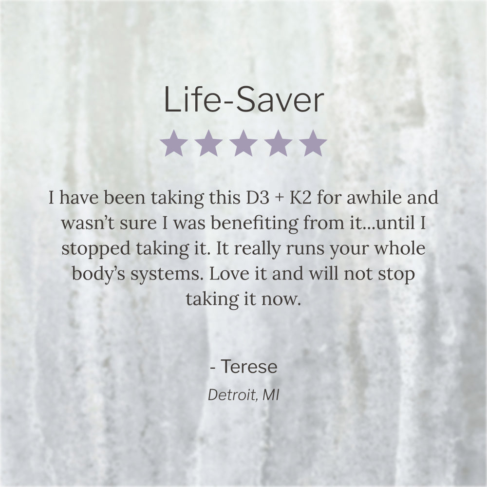 Our Vitamin D3 + K formula is designed to support the two steps your body relies on most: absorbing calcium and directing it where it’s truly needed.